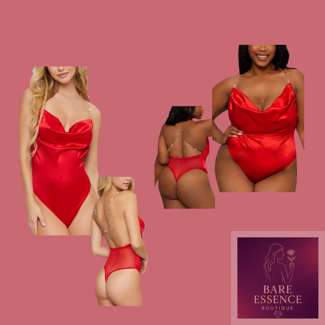 Roses are red, violets are blue, this new bodysuit is oh so you. A silky satin front and sheer mesh back give your body a 360 that's irresistible, plus two sets of straps mean your look for the night matches your mood. Keep it lowkey and romantic with clear straps, or get glam and ultra sexy with rhinestone straps!